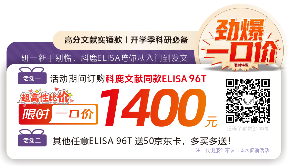 值此开学科研攻坚黄金期,为致谢各位科研工作者、科研学子的支持,科鹿生物顶刊同款·开学季特惠正式开启!所有入选产品均为近期IF>12高分文献直接引用款,经严苛验证,特异性强、灵敏度高、批次稳定,WB实验条带清晰、ELISA检测便捷,助力你的实验数据更可靠、发文更高效,每一款都是新学期科研路上的“硬核助手”