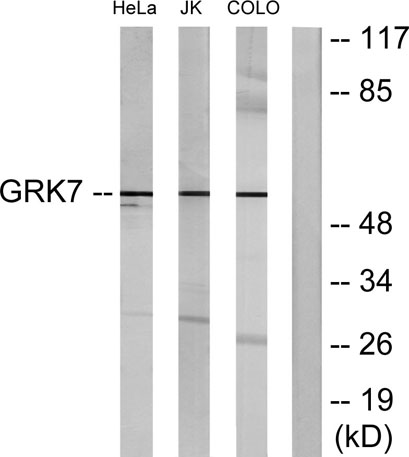 The antiserum was produced against synthesized peptide derived from human GRK7. AA range:371-420