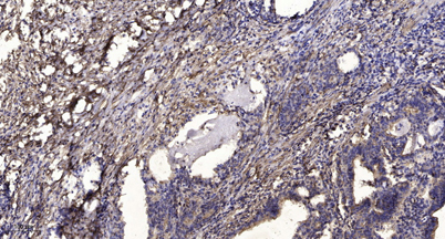 Immunohistochemical analysis of paraffin-embedded human Gastric adenocarcinoma. 1, Antibody was diluted at 1:200(4° overnight). 2, Tris-EDTA,pH9.0 was used for antigen retrieval. 3,Secondary antibody was diluted at 1:200(room temperature, 45min).