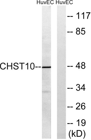 The antiserum was produced against synthesized peptide derived from human CHST10. AA range:191-240