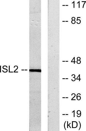 The antiserum was produced against synthesized peptide derived from human ISL2. AA range:161-210