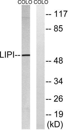 The antiserum was produced against synthesized peptide derived from human LIPI. AA range:289-338