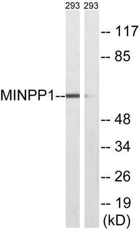 The antiserum was produced against synthesized peptide derived from human MINPP1. AA range:328-377
