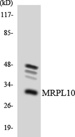 The antiserum was produced against synthesized peptide derived from human MRPL10. AA range:211-260