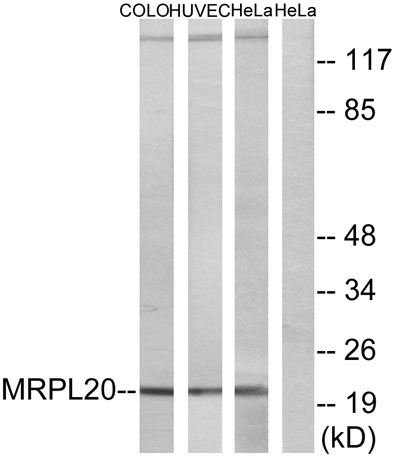 The antiserum was produced against synthesized peptide derived from human MRPL20. AA range:100-149
