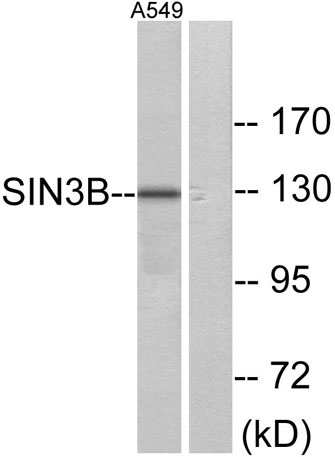 The antiserum was produced against synthesized peptide derived from human SIN3B. AA range:221-270
