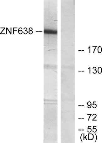 The antiserum was produced against synthesized peptide derived from human ZNF638. AA range:1271-1320