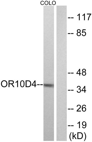 The antiserum was produced against synthesized peptide derived from human OR10D4. AA range:161-210