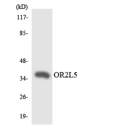 The antiserum was produced against synthesized peptide derived from human OR2L5. AA range:241-290