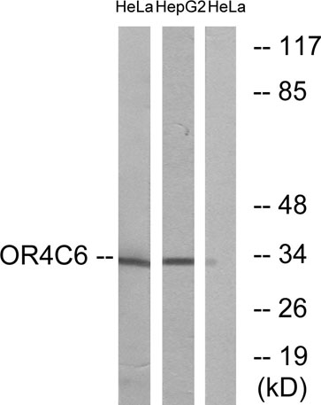 The antiserum was produced against synthesized peptide derived from human OR4C6. AA range:193-242