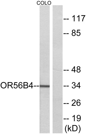 The antiserum was produced against synthesized peptide derived from human OR56B4. AA range:241-290