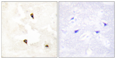 Immunohistochemistry analysis of paraffin-embedded human breast carcinoma tissue, using TP53I11 Antibody. The picture on the right is blocked with the synthesized peptide.