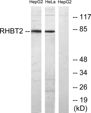 The antiserum was produced against synthesized peptide derived from human RHBT2. AA range:61-110