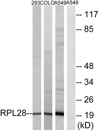 The antiserum was produced against synthesized peptide derived from human RPL28. AA range:41-90