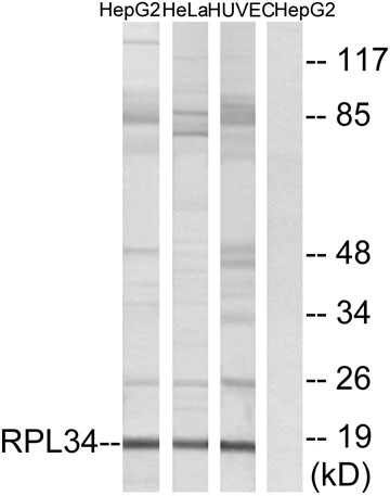 The antiserum was produced against synthesized peptide derived from human RPL34. AA range:41-90