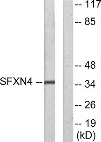 The antiserum was produced against synthesized peptide derived from human SFXN4. AA range:1-50