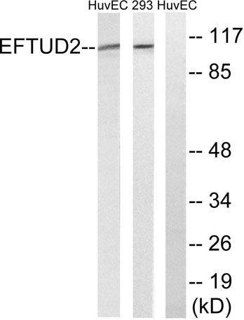 The antiserum was produced against synthesized peptide derived from human EFTUD2. AA range:321-370