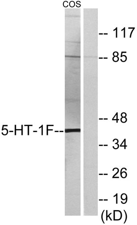 The antiserum was produced against synthesized peptide derived from human 5-HT-1F. AA range:101-150