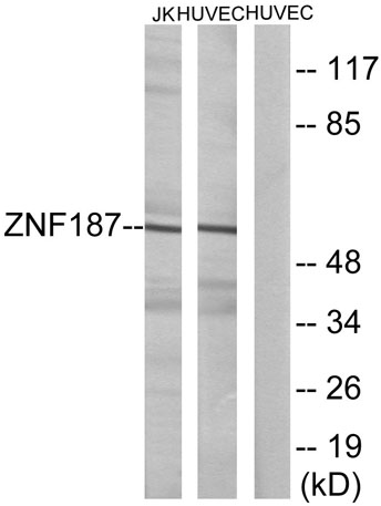 The antiserum was produced against synthesized peptide derived from human ZNF187. AA range:51-100