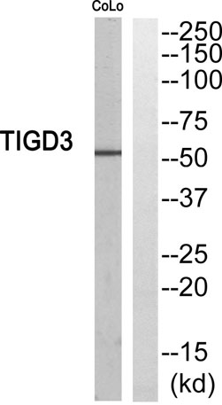The antiserum was produced against synthesized peptide derived from human TIGD3. AA range:381-430