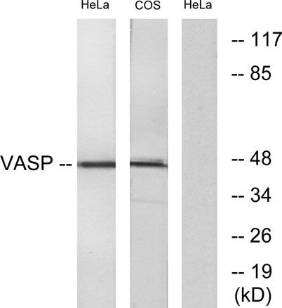 The antiserum was produced against synthesized peptide derived from human VASP. AA range:206-255
