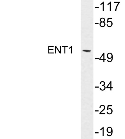 The antiserum was produced against synthesized peptide derived from human ENT1. AA range:15-64