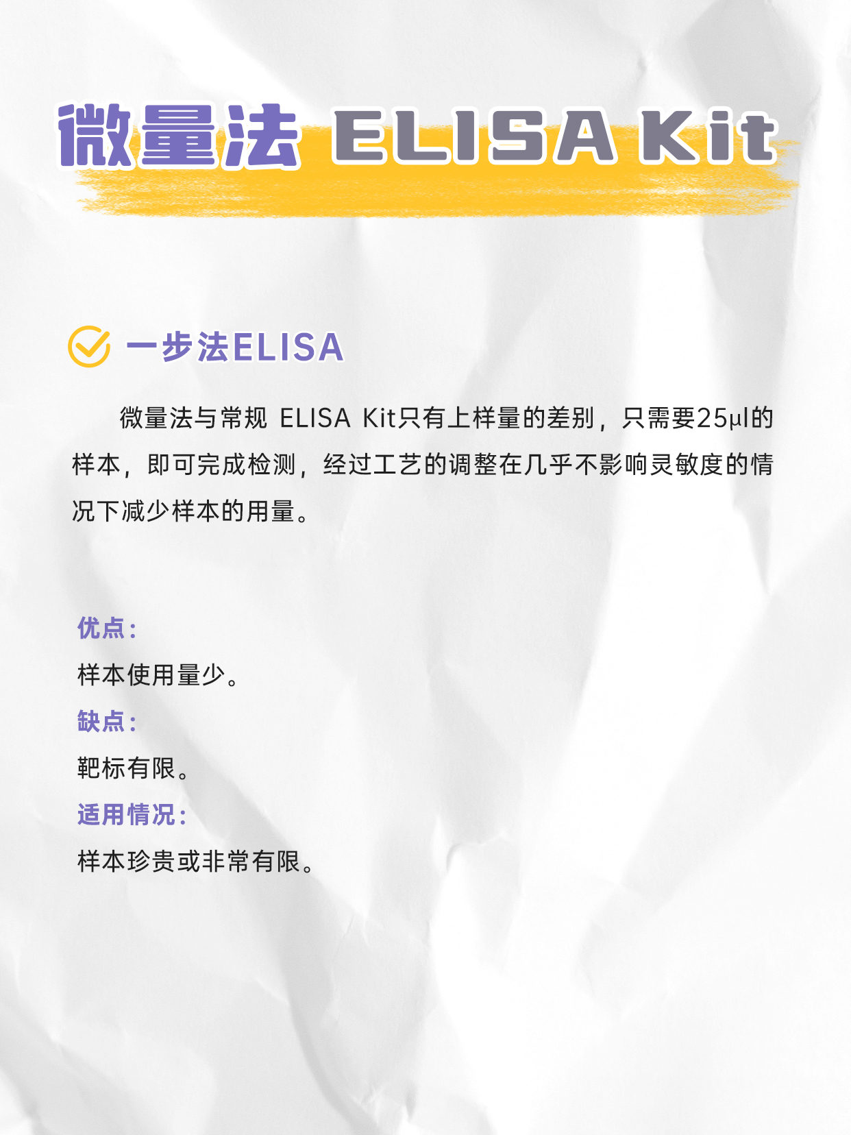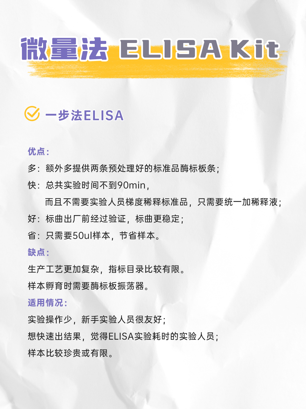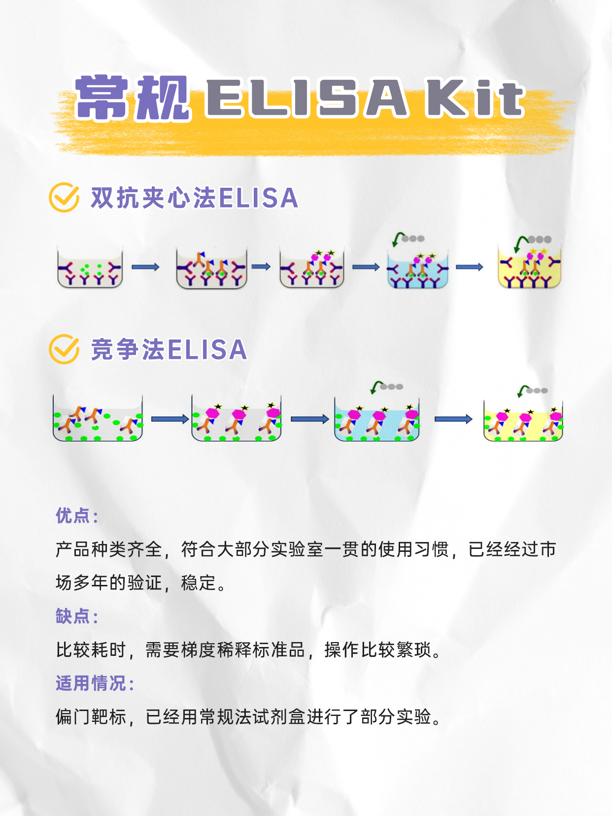 ELISA全称为酶联免疫吸附实验,是一种基于抗原-抗体特异性结合的高灵敏度免疫检测技术,利用抗原与抗体的特异性结合,通过酶标记物(如辣根过氧化物酶HRP或碱性磷酸酶ALP),再通过底物显色反应相对定量目标分子。一般用酶标仪测定吸光度(OD值)来反映抗原或抗体含量,灵敏度可高达皮克(pg)水平。由于酶的催化效率很高,间接地放大了免疫反应的结果,使测定方法达到很高的敏感度。